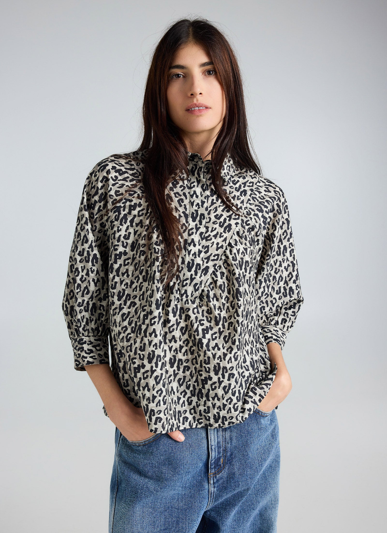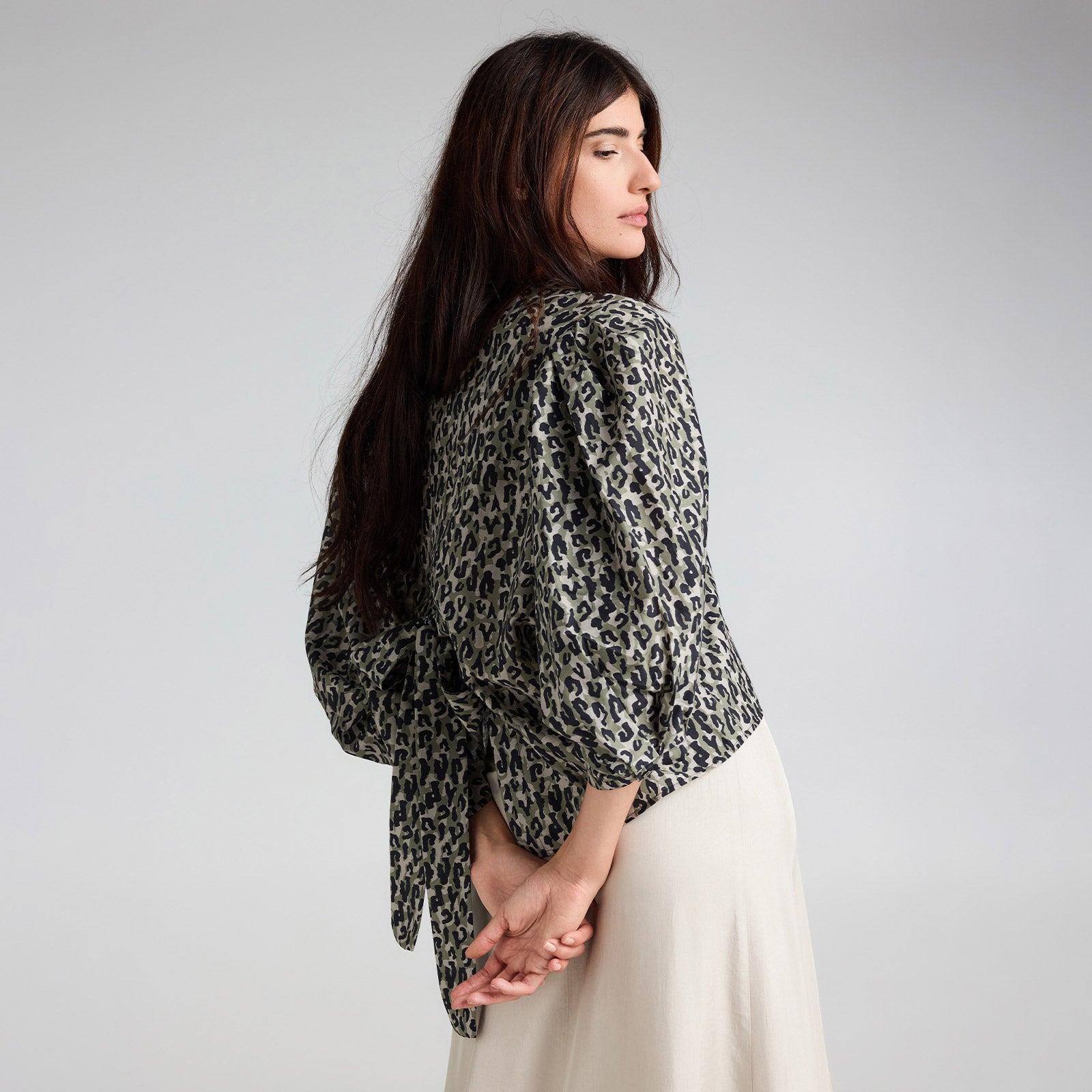 Bedruckte Bluse mit Bindedetail aus Baumwoll-Seidenmaterial