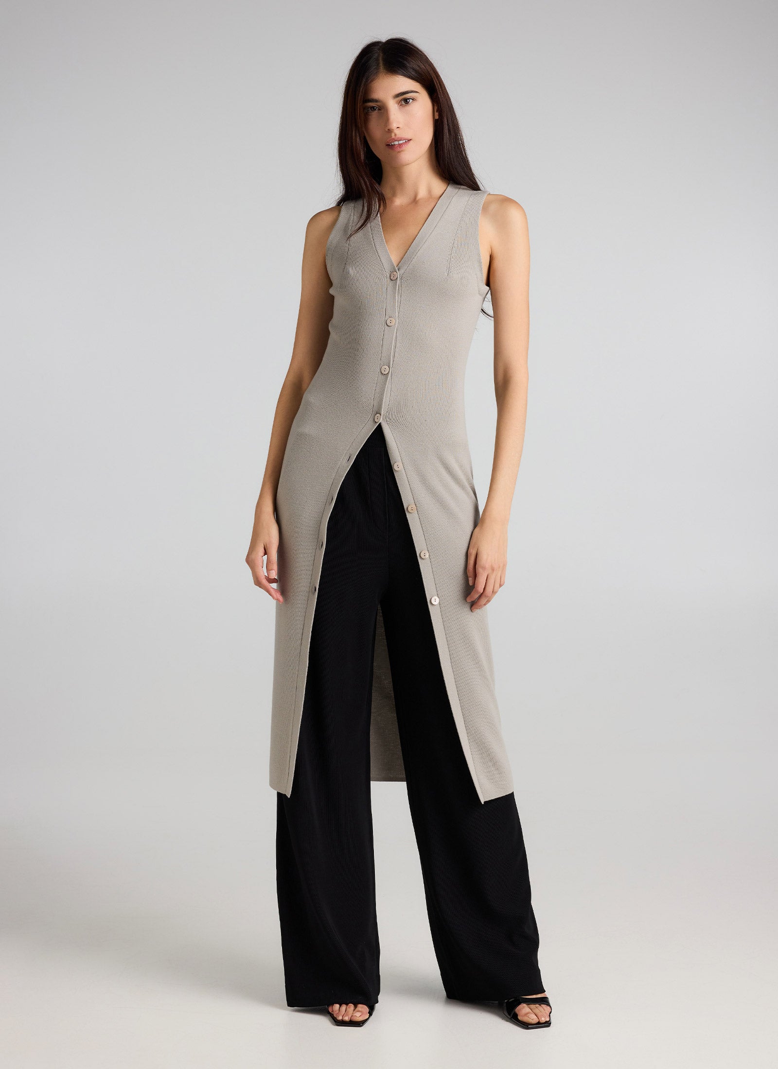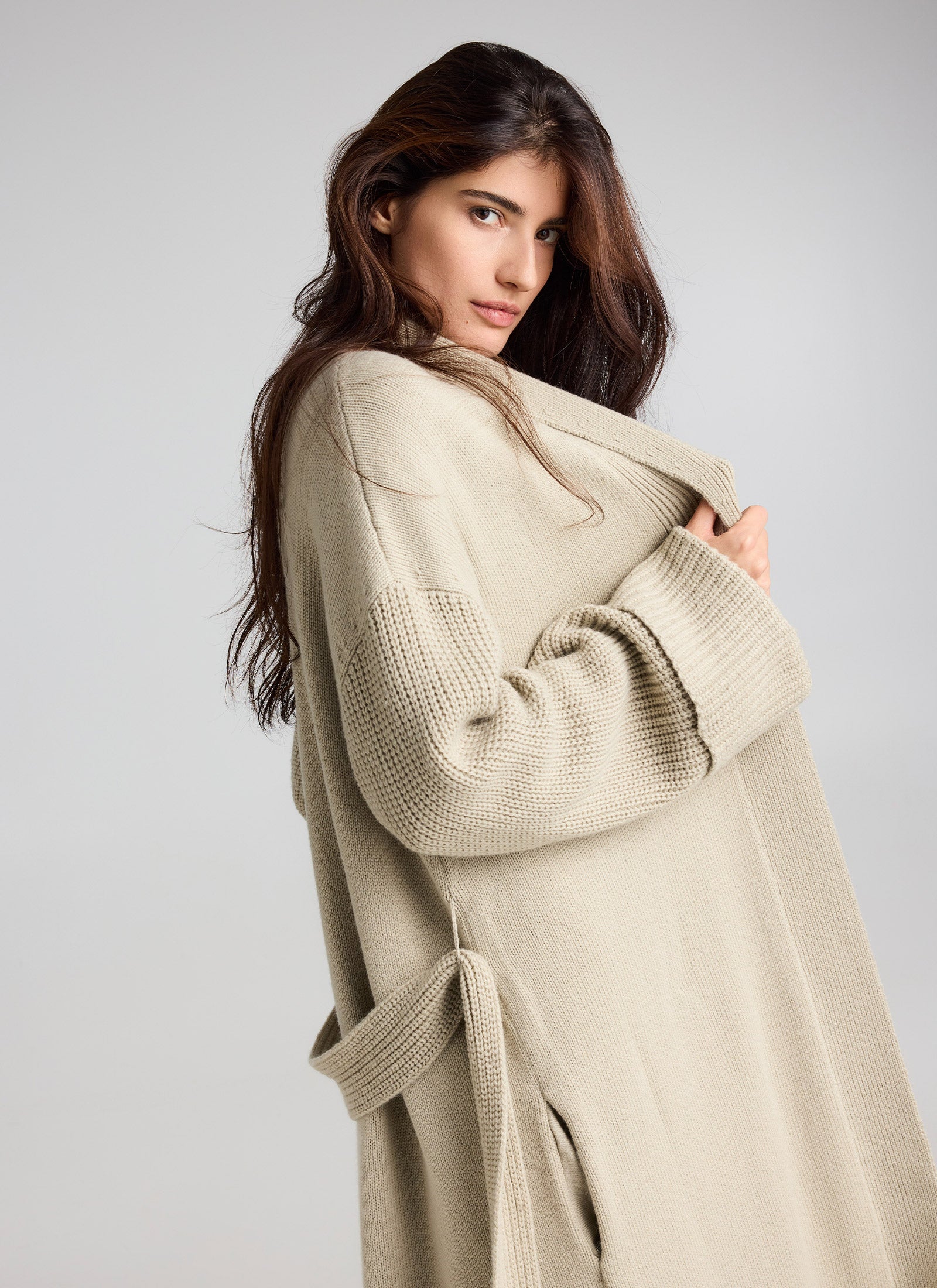 Lange Strickweste aus Merinowolle, zugeknöpft als Strickkleid stylebar