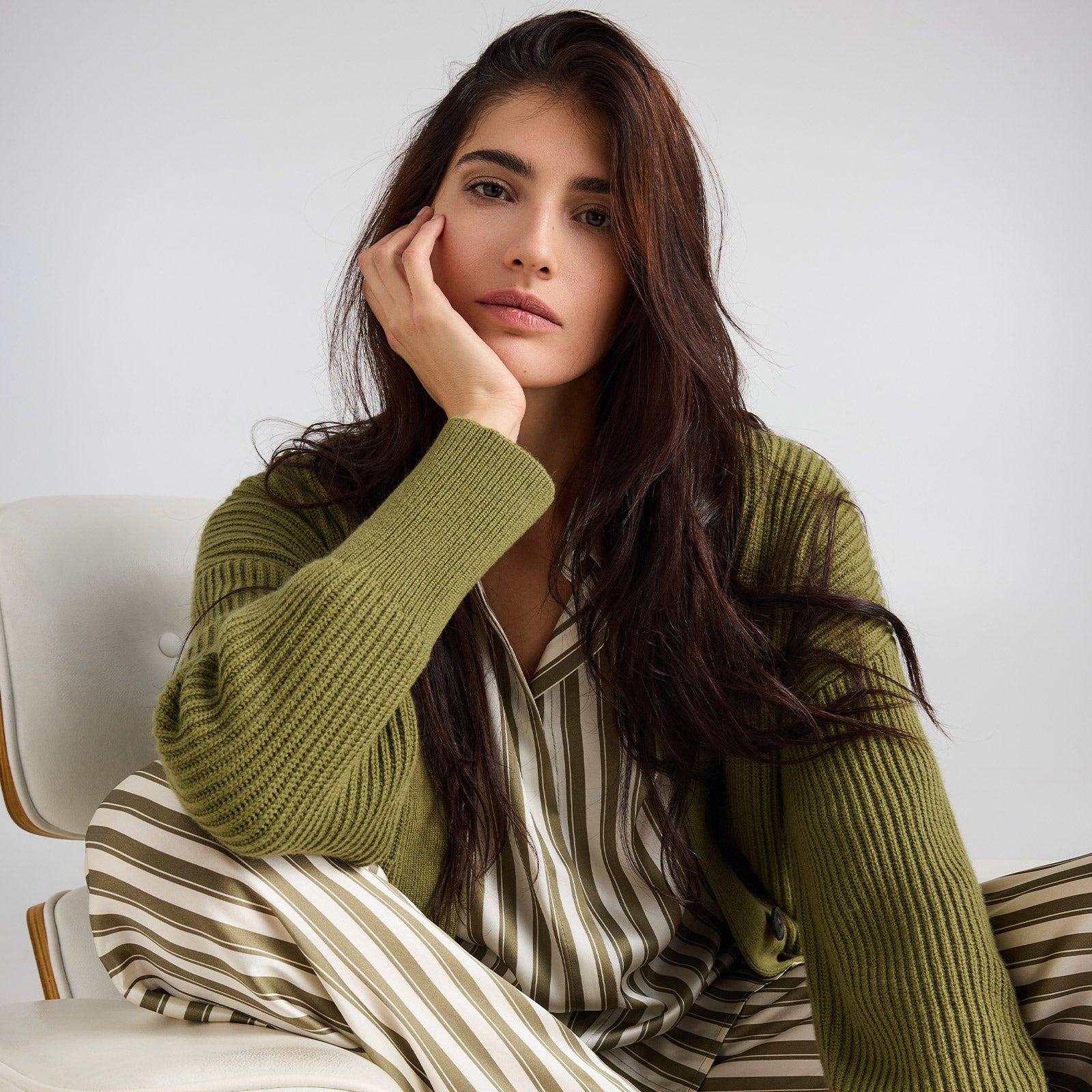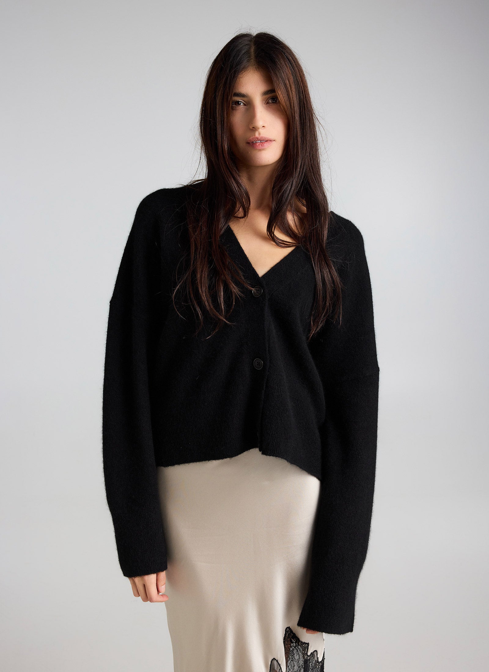 Verkürzter Cardigan mit V-Ausschnitt aus einem Woll-Kaschmir Garn