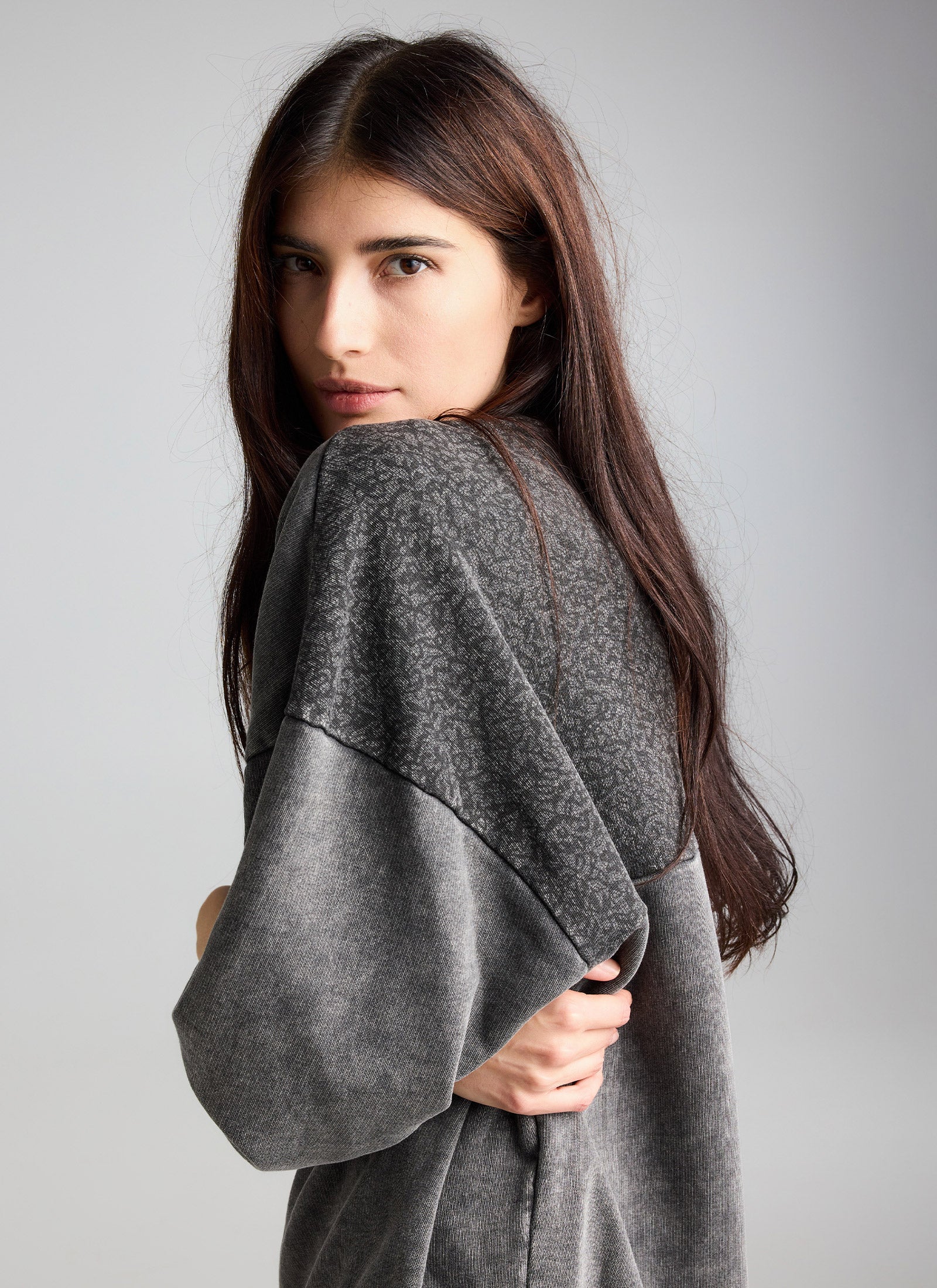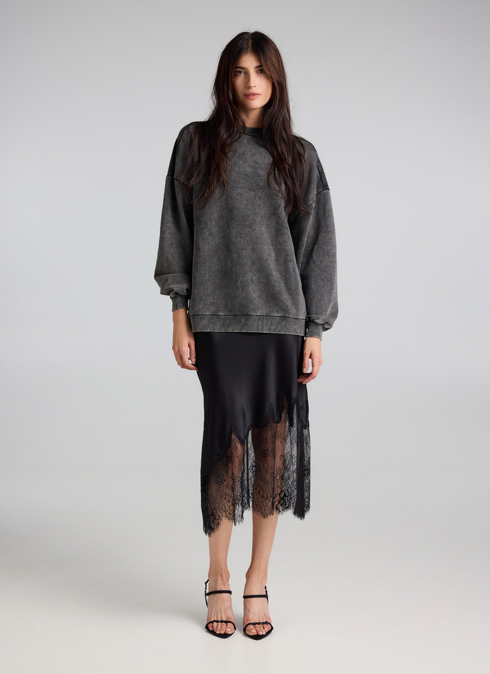 Antik-Wash Sweatshirt mit Spitzenprint aus Baumwolle