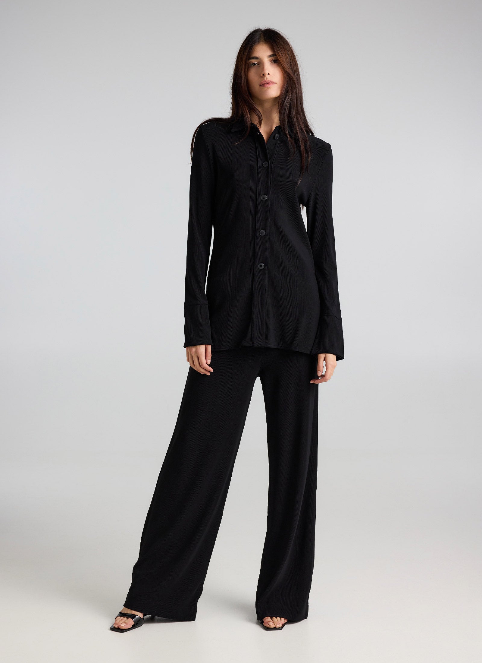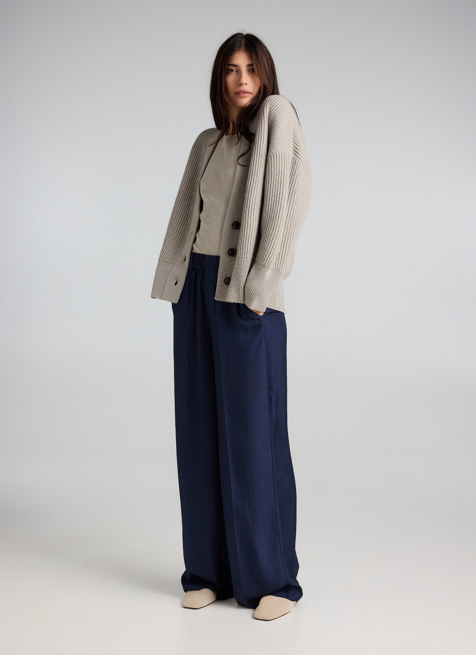 Hose mit weiten Beinverlauf und knöpfbarem Elastikbund