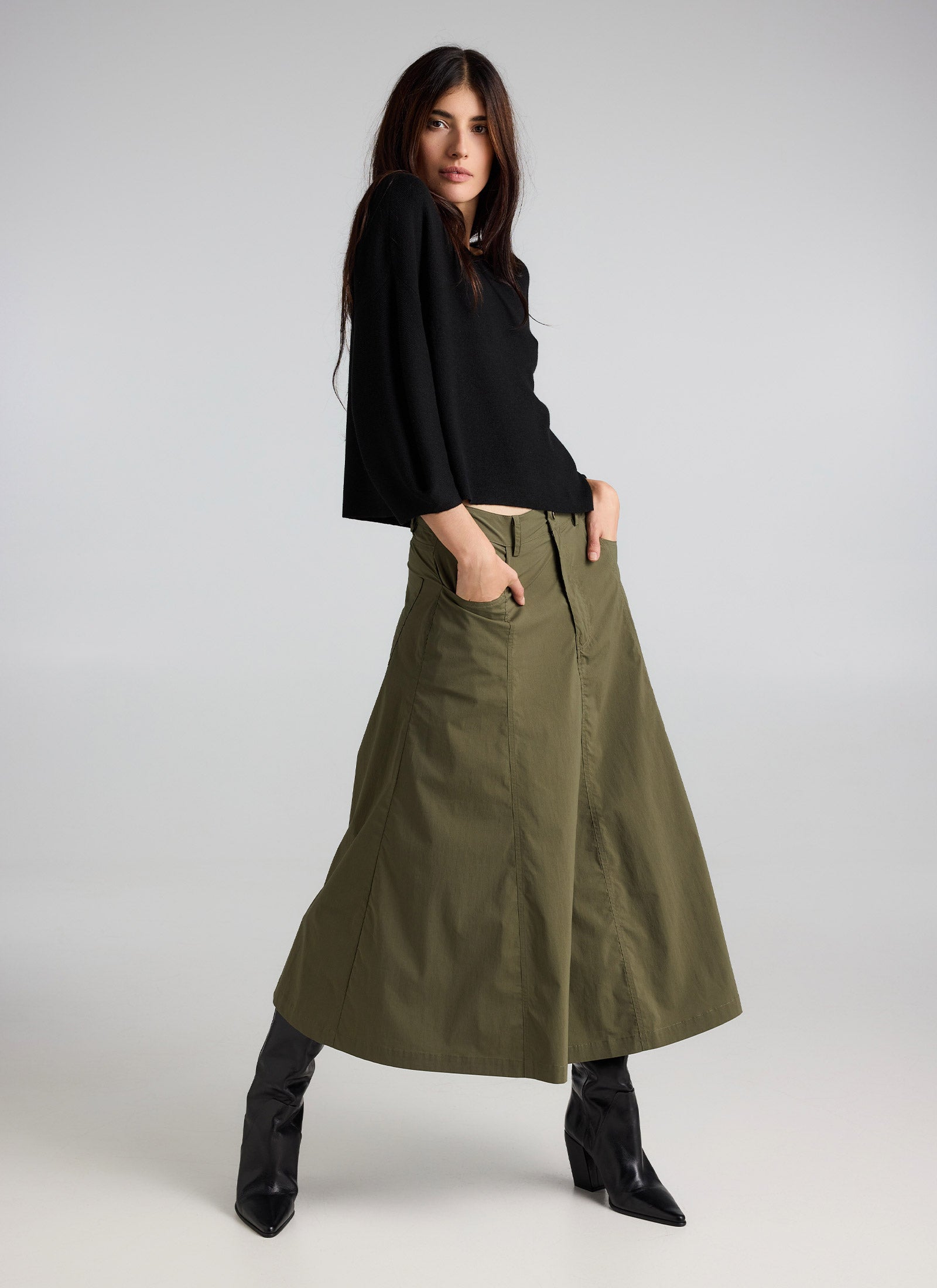 Midirock mit A-Linie und Teilungsnähte aus einem Baumwollmaterial