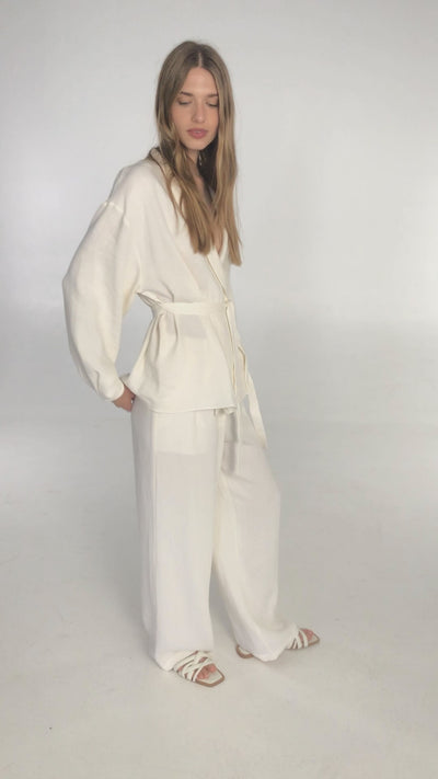 Diese Jacke im Kimono-Stil ist ein Hingucker und Must-Have für die neue Saison. Sie ist aus einem Leinenmix gefertigt, ungefüttert und wird mit einem Bindegürtel aus Oberstoff geschlossen. Für den Komplettlook bieten wir eine passende Hose HEIDILENE dazu an.